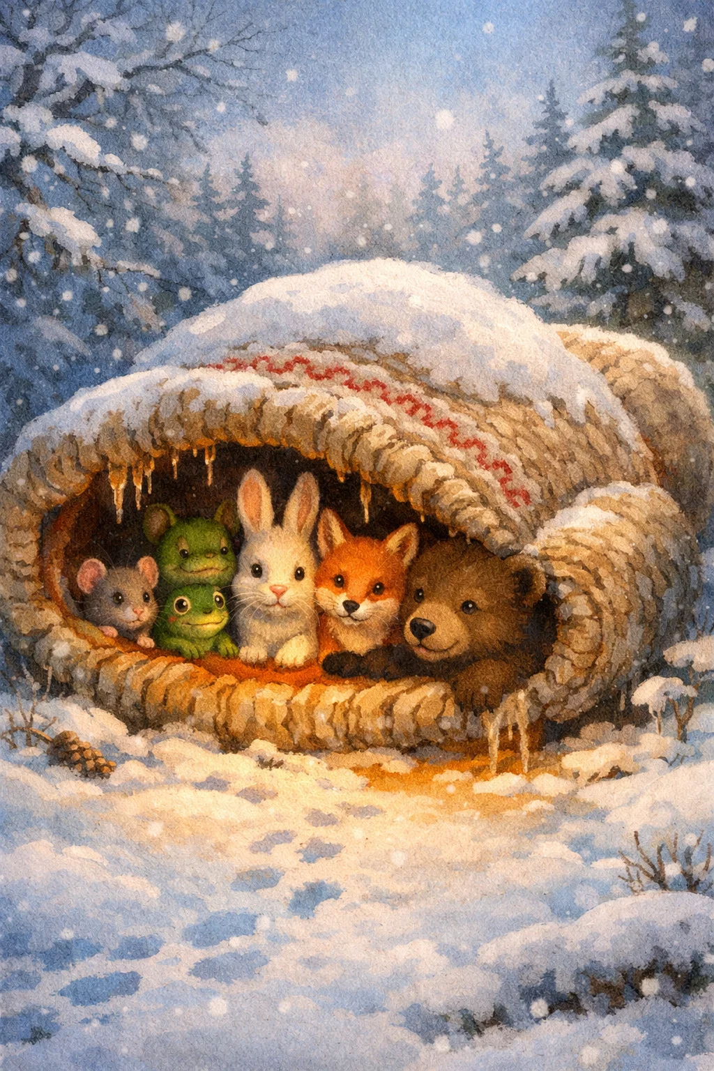 Дід загубив рукавичку в засніженому лісі — і саме вона стала найзатишнішим місцем у зимовий холод. Спершу забіг Мишко-шкряботушко, потім Жабка-скрекотушка, за ними — Зайчик-побігайчик. Кожен новий мешканець здавався занадто великим для такого маленького прихистку, але рукавичка якось вміщувала всіх. Слухати казку «Рукавичка» українською мовою — означає відчути, як тісне місце стає теплим, коли поруч ті, хто не відмовляє в допомозі.